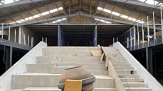 En paralelo, continúan desarrollándose las instalaciones eléctricas, de datos, internet, termomecánica y sistemas contra incendios, además de la construcción de elementos característicos del edificio, como la rampa principal del centro. También se registran avances en las escaleras principales, la estructura externa del ascensor, barandas, carpinterías tipo linterna y en la grada principal del espacio.