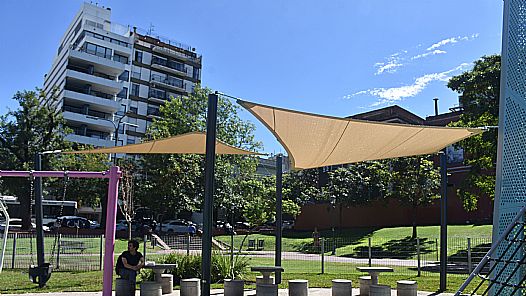 En el tradicional Parque Lezama, ubicado en el barrio de San Telmo, se concretó la incorporación de un nuevo espacio de sombra en el sector de estar contiguo al patio de juegos. El área intervenida se encuentra en la intersección de las avenidas Martín García y Defensa, en cercanías de la estación Constitución y del Hospital General de Agudos Dr. Cosme Argerich, así como también del Museo Histórico Nacional.